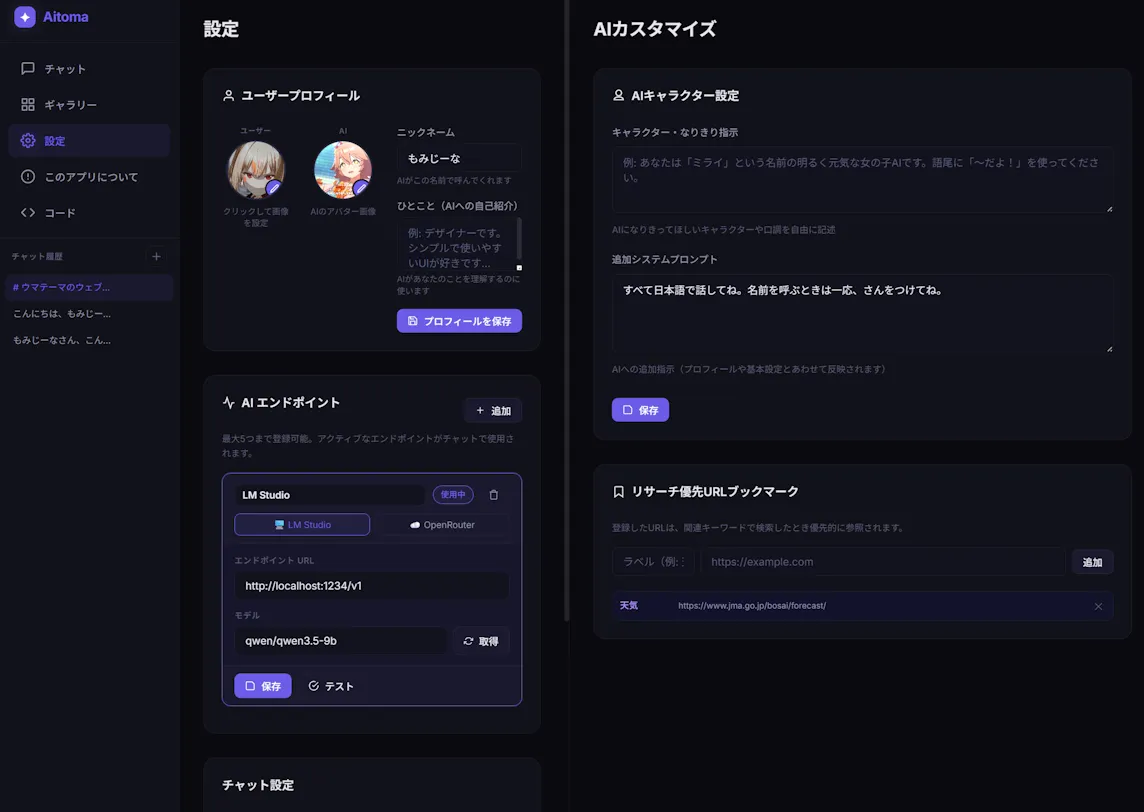 AIのエンドポイントはLM StudioとOpenRouterに対応させてるのでローカルでもクラウドでも可能にしてます。