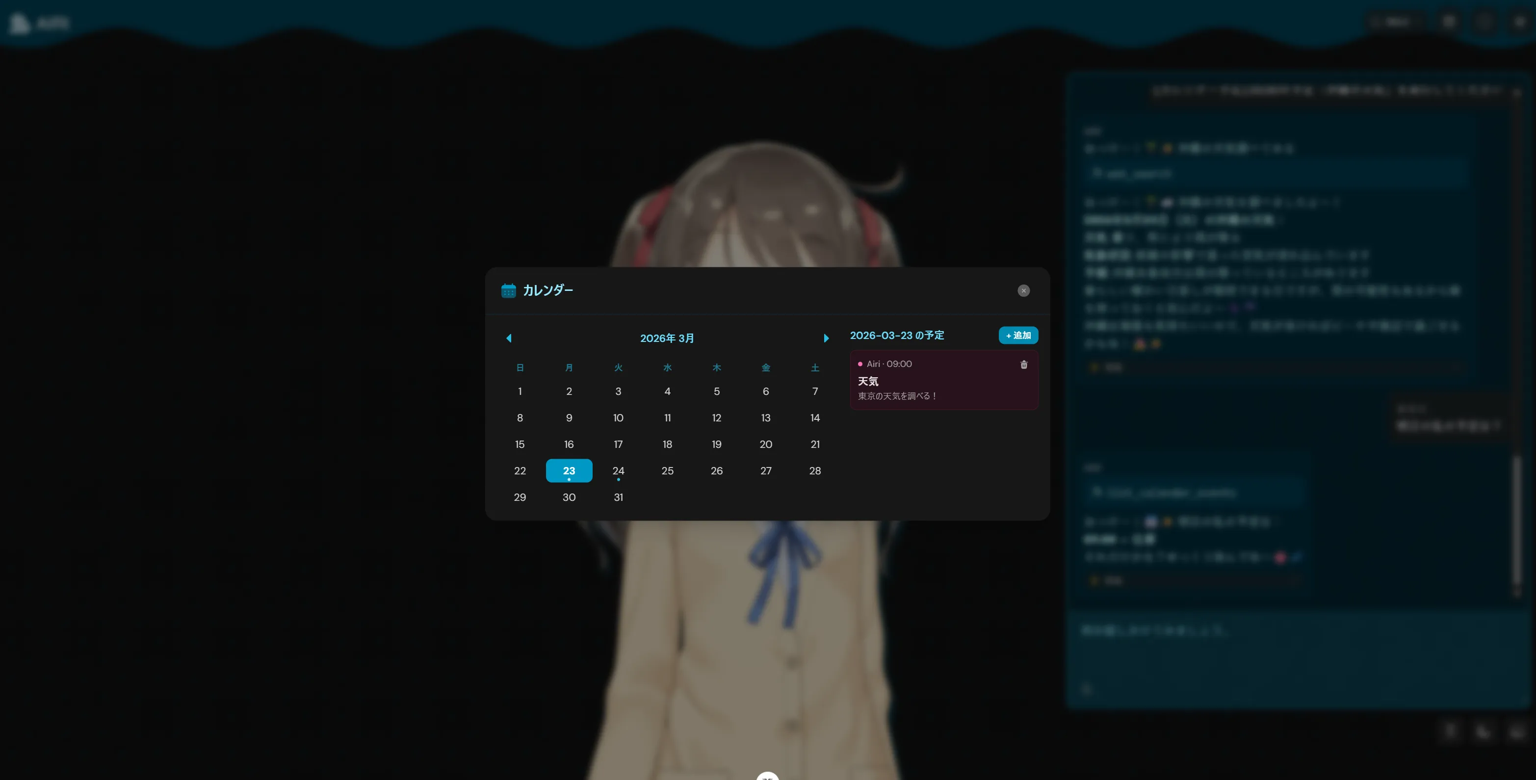Airiの予定と自分自身の予定を追加可能