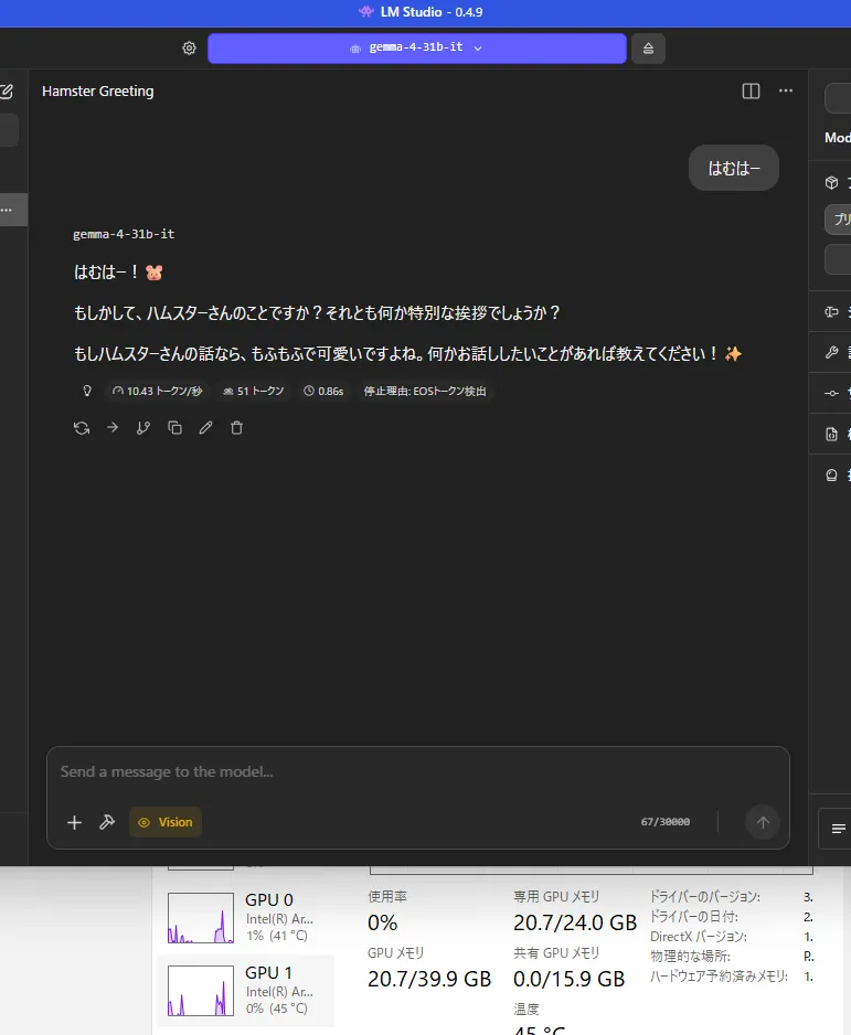 Gemma4 31bの簡単なテスト(速度とか)