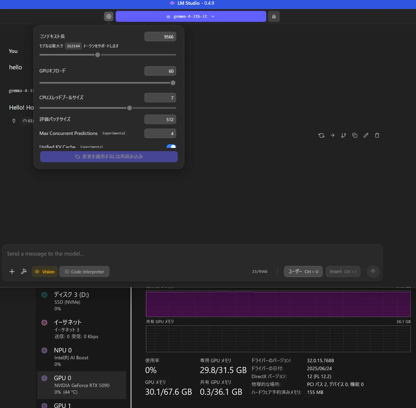 9000トークンでも21GB予測になってますが28くらい使いますね(バグか予測が正確じゃないだけか)