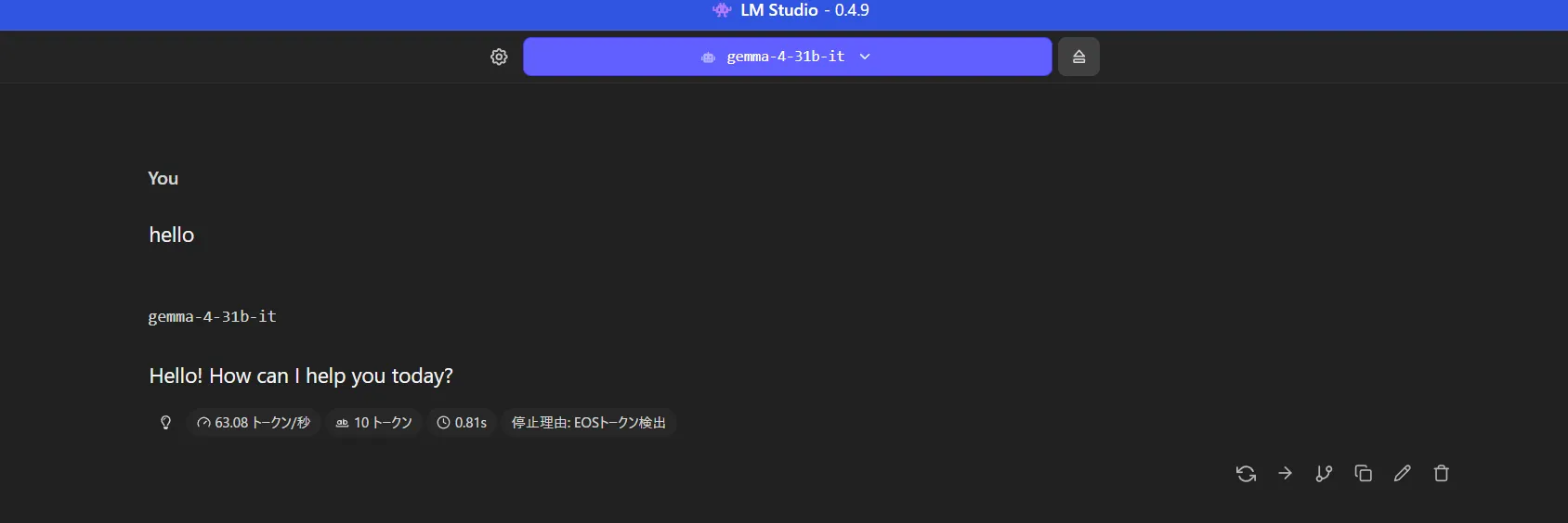 Gemma4は魅力を感じなかったのでHelloだけです