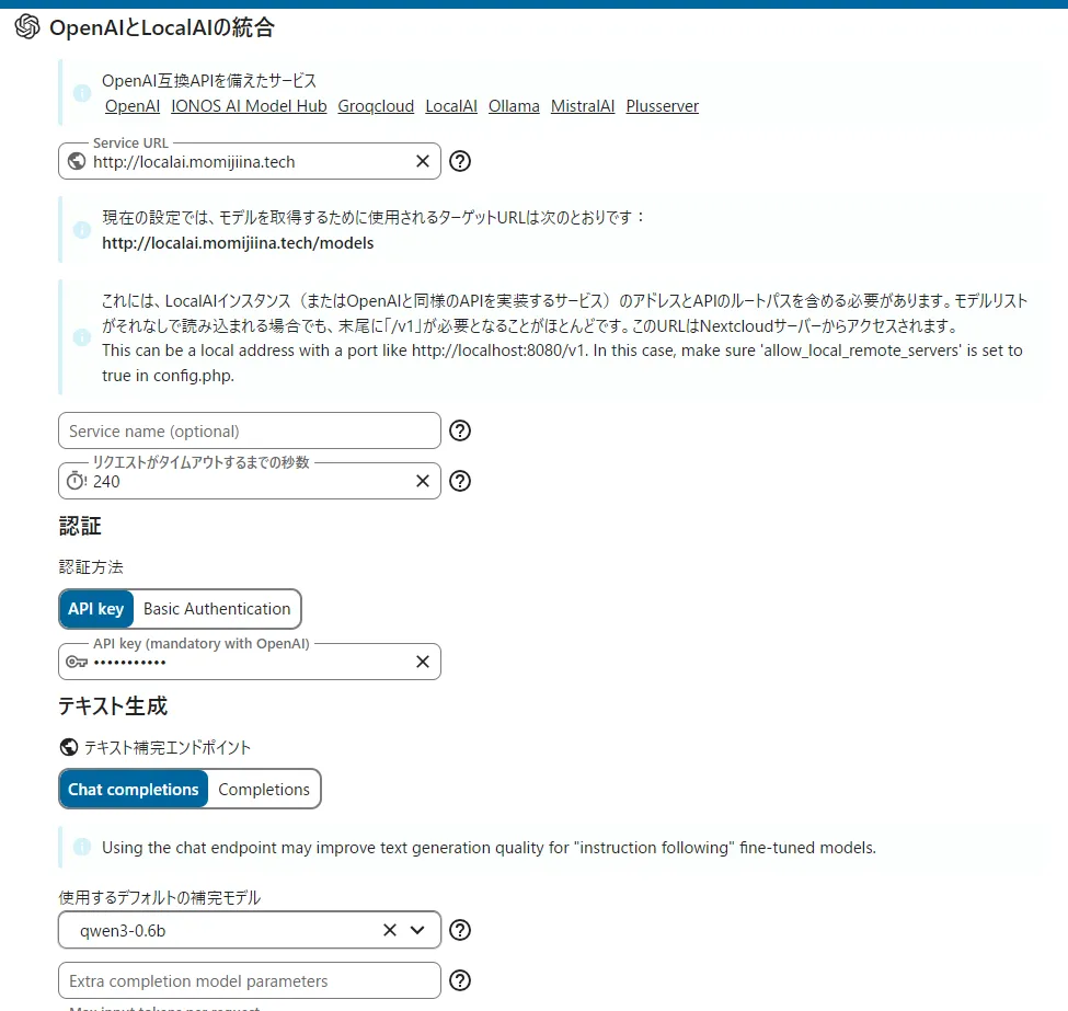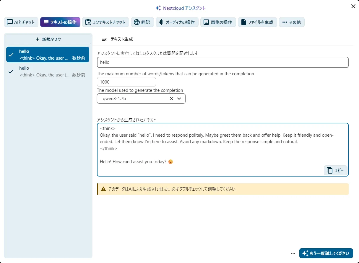 NextcloudにLocalAIを導入してみる(CPU)