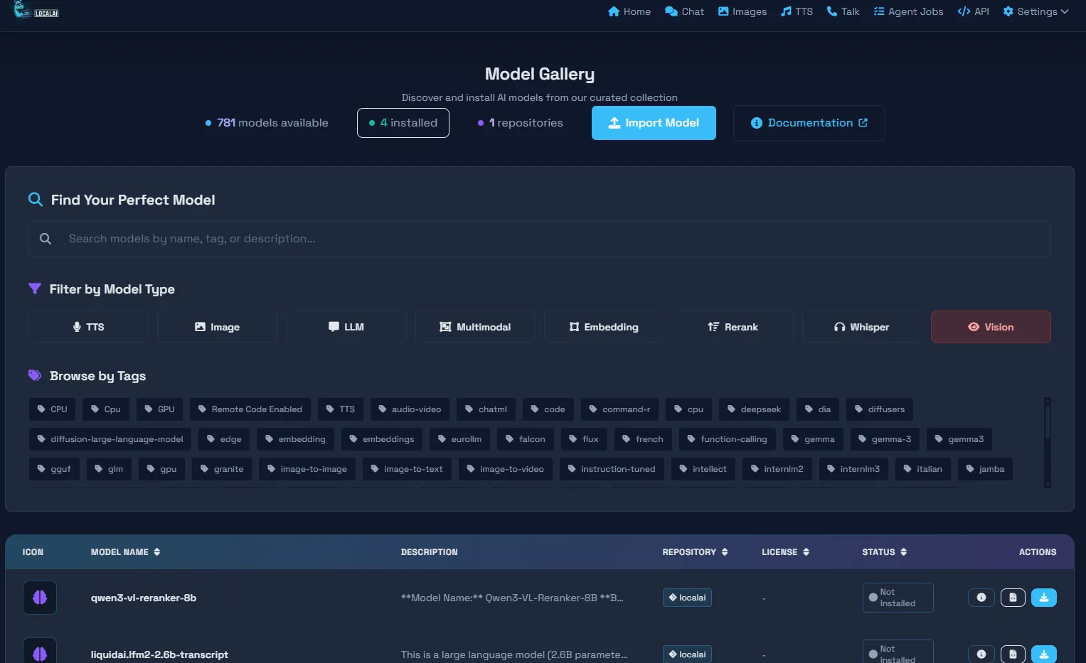 AIモデルも似た感じで表示とインストール可能でした。